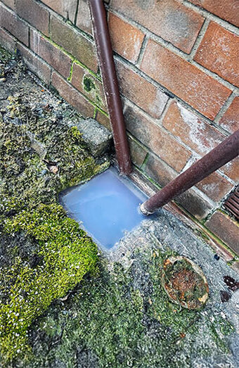 Urgent repairs for downpipe and gutter blockages causing water to overflow from the roof, preventing internal leaks and ceiling damage.